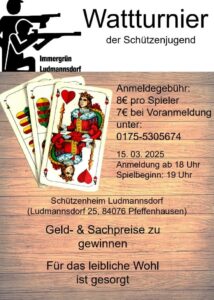 Am 15.03.2025 Findet wieder dass Wattturnier unserer Jugend statt. Anmeldungen ab 18:00 Uhr möglich.